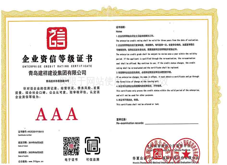 企業(yè)資信等級(jí)證書(shū)