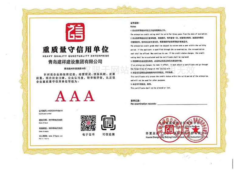 重質(zhì)量守信用單位