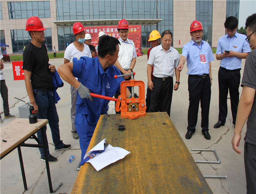 膠州市第十五屆建筑業(yè)“建祥杯”職業(yè)技能大賽于8月24日在青島建祥建設集團舉行,主辦單位有膠州市城鄉(xiāng)建設局,膠州市人力資源和社會保障局,膠州市總工會和共青團膠州市委員會。協(xié)辦單位有青島勝利兄弟建筑有限公司,膠州市建筑業(yè)發(fā)展協(xié)會和膠州市聯(lián)創(chuàng)科技進修學校。承辦單位為青島建祥建設集團有限公司。大賽共分為管工,鋼筋工和裝飾裝修工三個賽區(qū)。膠州市人社局,建筑局,總工會等有關(guān)單位負責人和建祥集團領(lǐng)導均出席本次大會開幕式。